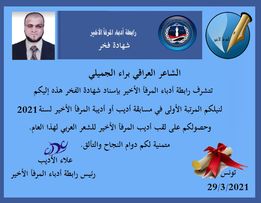 وبذلك يكون الشاعر العراقي براء الجميلي اديب المرفأ الأخير لسنة 2021. الدورة الثانية.