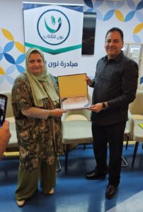 في ختام الأمسية، كرّم أعضاء مبادرة نون للكتاب الكاتب الحوتري بدرع تقديري وهدايا متنوعة احتفاءً بمساهمته الأدبية ودوره المؤسس في إطلاق المبادرة، كما قدم رئيس منتدى الفريق الإبداعي رائد عساف درعاً تكريمياً آخر. هذا وقد توجه المشاركون بالشكر الجزيل للمضيف مكتبة عبد الحميد شومان ولإدارة فعالياتها ممثلة بالسيدة راية كعابنة على دورها في إثراء المشهد الثقافي المحلي والعربي.