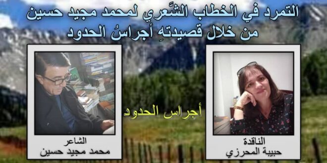 تقوم القصيدة على ثنائية الحدود والعبور، لأنّ الحدود في القصيدة لا تظهر كفعل جغرافي هندسه المستعمر الطاغي ذات ظلم وتجبر ، وانما كرمز كوني للمنع والرهبة والخوف من اقتحام فضاء الآخر ، والشاعر يتحدى هذا المفهوم ويجعل للحدود أجراسا ، لا أسوارا وأسلاكا شائكة.لان الجرس يعلن عن الحياة والانفتاح لا الانغلاق والخوف لكن بنهج تحفيزي تحذيري.